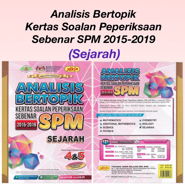 Brand, pustaka yakin pelajar ; Inggeris matematik sains pendidikan islam sejarah matematik tambahan prinsip akaun physics chemistry . Koleksi soalan percubaan spm sejarah 2018sedia maklum peperiksaan . Sejarah kertas 1 2 3. Koleksi kertas soalan peperiksaan percubaan ekonomi spm 2019 2018 2020. Soalan sebenar spm 2019 dan soalan percubaan spm 2020 skema. Soalan peperiksaan spm sebenar 2019 dan skema jawapan ; Size (l x w x h), 20 cm x 2 cm x 26 cm ;